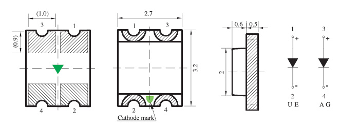 G n | 2.8-3.6V | 500-800mcd | 515-535nm | ||