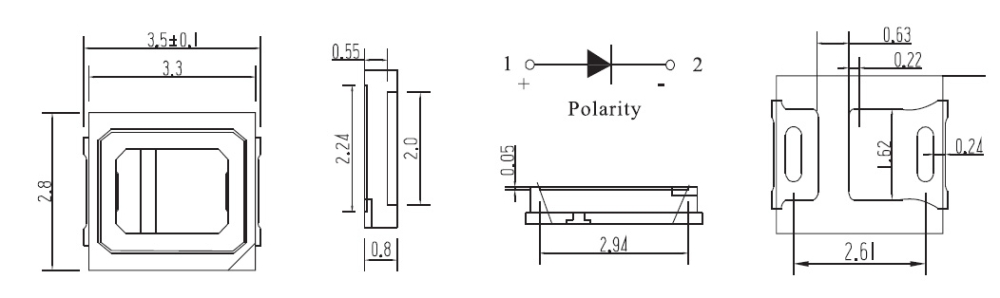 H2835AV2XXXXXX | R n | 1.8-2.6V | 780-2800mcd | 615-635nm | 120° |