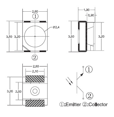 H3528AP12A0C01 | 25V | 0.5mA | 3m | 940nm | 60° |
